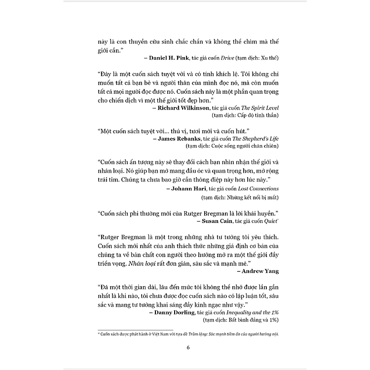 Lối viết nhẹ nhàng, dễ tiếp cận của Bregman cho độc giả thấy lịch sử nếu nhìn từ góc độ nhân văn rất thú vị, gần gũi và gợi lên vô vàn suy tưởng. Một cuốn lược sử đúng nghĩa được viết dưới dạng của những câu chuyện và đối thoại.