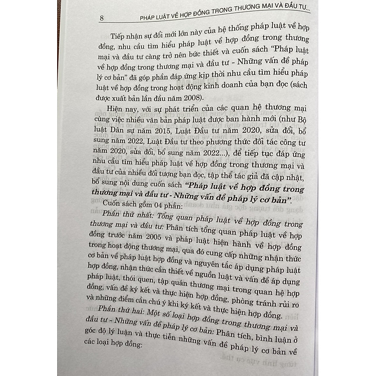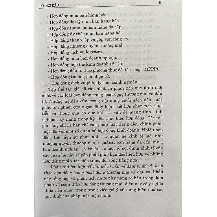 Trong lần xuất bản Thứ tư này cuốn sách để được các tác giả chỉnh sửa và cập nhật quy định liên quan đến chế định hợp đồng của Luật thương mại năm 2005 sửa đổi bổ sung năm 2017,2019, luật doanh nghiệp 2020 sửa đổi bổ sung năm 2022 được đầu tư 2020 sửa đổi bổ sung năm 2022 luật đầu tư theo phương thức đối tác công tư năm 2020 sửa đổi bổ sung năm 2022 ,bộ luật dân sự 2015 …cùng các văn bản hướng dẫn thi hành .Cuốn sách cung cấp cho bạn đọc những kiến thức chuyên sâu, cụ thể về các loại hợp đồng cơ bản trong hoạt động thương mại và đầu tư tại nước ta cũng rất cũng giới thiệu những kỹ năng cơ bản khi soạn thảo hợp đồng cùng các mẫu hợp đồng phổ biến trong hoạt động thương mại và đầu tư sức các bên trong hoạt động phòng tránh được những rủi ro pháp lý giảm thiểu các tranh chấp trong hợp đồng kinh doanh