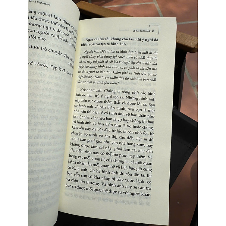 Với văn phong trực diện, không vòng vo, Krishnamurti không đưa người đọc đến một điểm kết, mà mở ra một tiến trình: từ quan sát đến tự do, từ định hình đến khả năng sống không có hình ảnh về bản thân và người khác — một khởi đầu cho mối quan hệ không còn khổ đau và áp đặt.