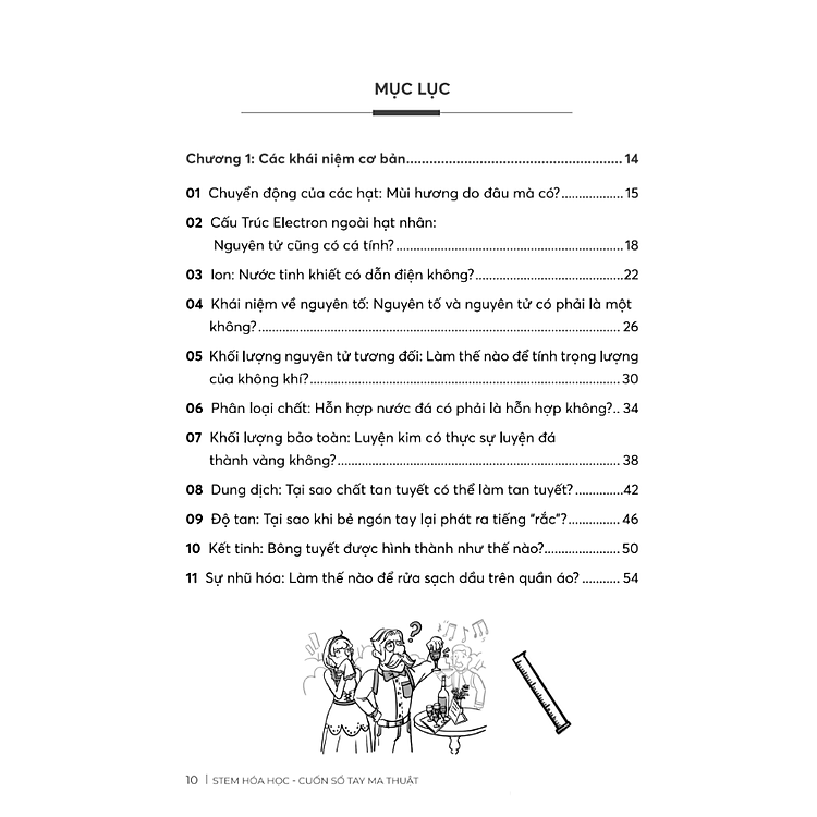 Cuốn sách “STEM Hóa Học – Cuốn Sổ Tay Ma Thuật” được chia thành các chương với những câu hỏi và thí nghiệm hấp dẫn: