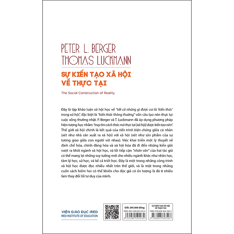 SỰ KIẾN TẠO XÃ HỘI VỀ THỰC TẠI (The Social Construction of Reality) – (bìa mềm) – Giá bìa: 295.000đ