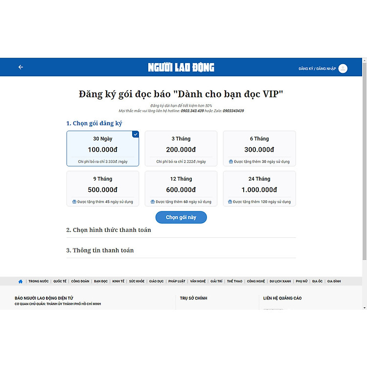Các thông tin khác: Thẻ VIP “dành cho bạn đọc VIP” của Báo Người Lao Động – 30 ngày