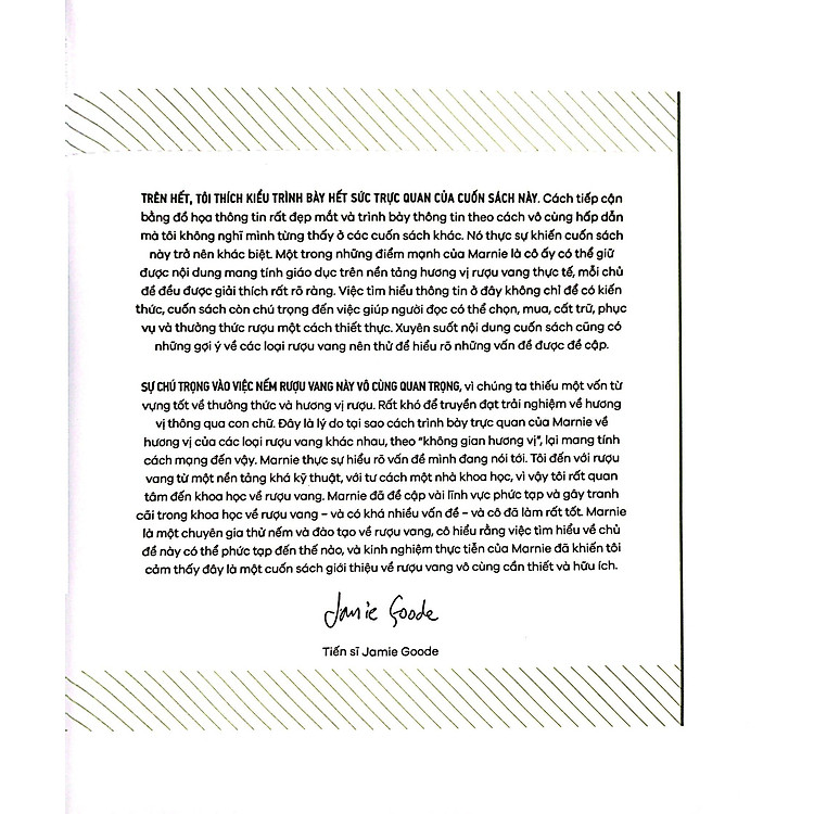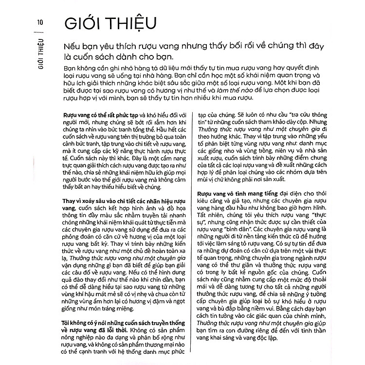 Không biệt ngữ, không phán xét và đầy ý nghĩa, Thưởng thức rượu vang như một chuyên gia là cuốn sách chứa đựng tất cả những thông tin cần biết để bạn có thể tận hưởng bất cứ chai rượu vang nào một cách hoàn hảo.