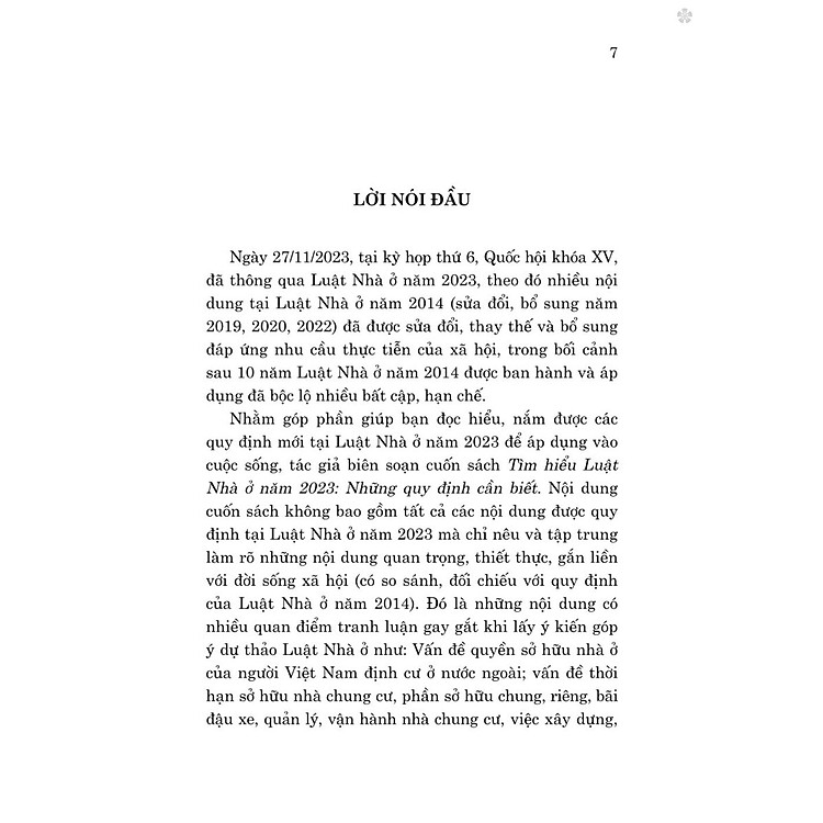 - Content: The book consists of 7 chapters covering essential aspects of housing law in Vietnam.