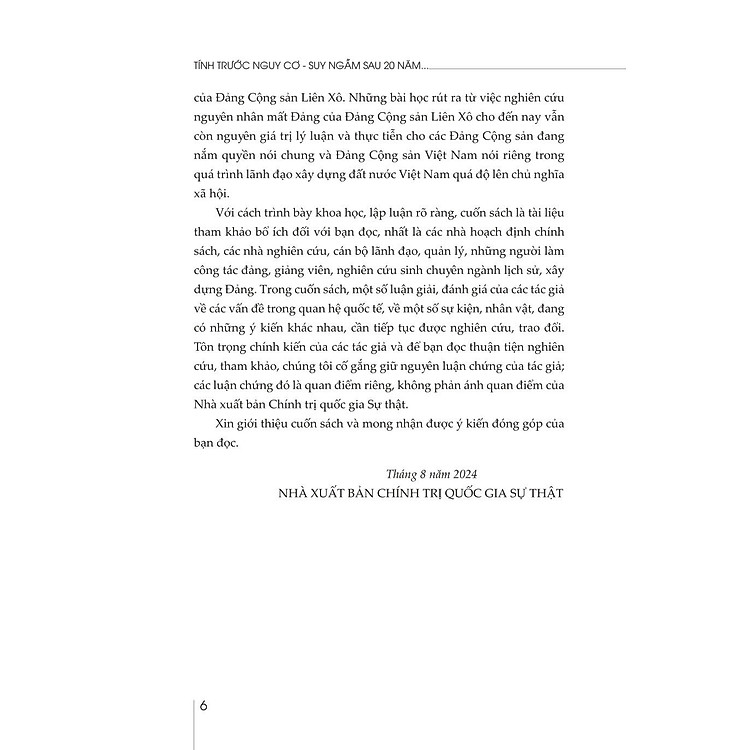 - Title: “Tính trước nguy cơ – Suy ngẫm sau 20 năm Đảng Cộng sản Liên Xô mất đảng” (2024 edition)
