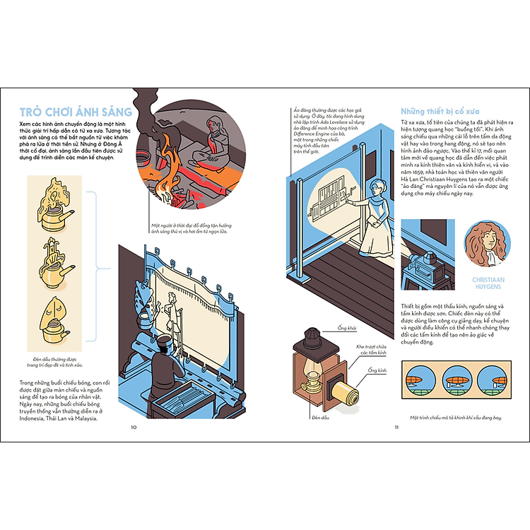 Phim điện ảnh có nguồn gốc từ đâu? Các loại máy quay hoạt động như thế nào? Thiết kế bối cảnh, trang phục cho phim cần chú ý đến những yếu tố gì? Hãy cùng tìm hiểu mọi vấn đề liên quan tới bộ môn nghệ thuật thứ bảy trong cuốn sách tranh sinh động Trang Sử Huyền Ảo – Điện Ảnh nhé!