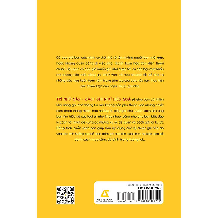 Hy vọng cuốn sách “TRÍ NHỚ SÂU – CÁCH GHI NHỚ HIỆU QUẢ” sẽ trở thành công cụ giúp bạn thoát khỏi những phiền phức mà “não cá vàng” đem lại, xây dựng sự tự tin vào khả năng trí tuệ của bản thân.