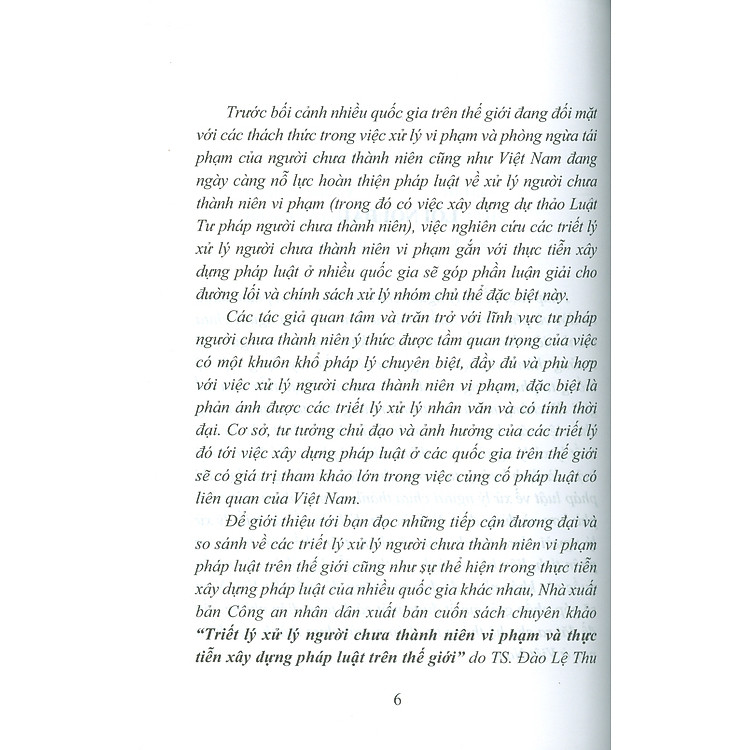 - Title: Mua Triết Lý Xử Lý Người Chưa Thành Niên Vi Phạm Và Thực Tiễn Xây Dựng Pháp Luật Trên Thế Giới (Specialized Book) by TS. Đào Lệ Thu.