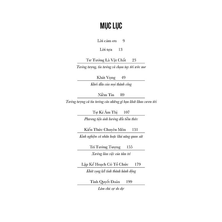 Mỗi chương kết thúc bằng các bài tập và bước hành động để bạn có thể áp dụng những gì mình vừa học được, giúp bạn biến khao khát thành động lực tiến lên phía trước. Trong quá trình đọc, hãy ghi lại những suy nghĩ và ý tưởng của bạn, làm rõ mục tiêu và sắp xếp kế hoạch.