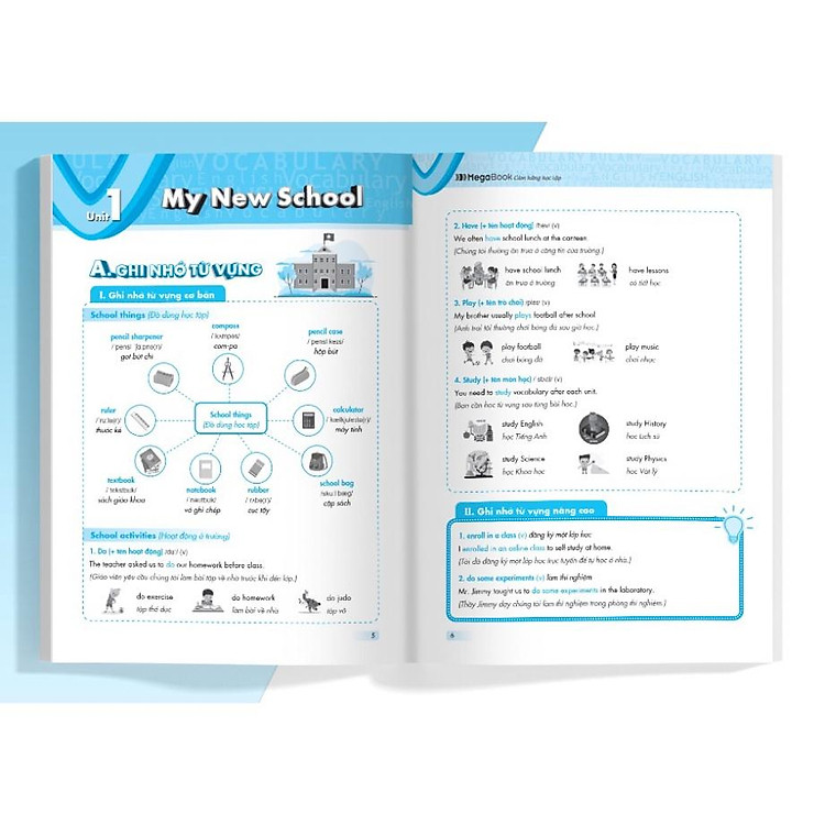 Các từ vựng được giới thiệu có kèm hình ảnh và ví dụ cụ thể giúp các em học nhanh và ghi nhớ lâu.