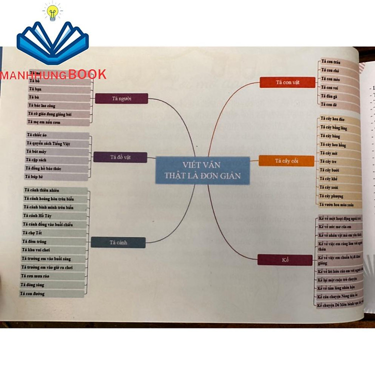 Cuốn sách “Viết văn thật là đơn giản – Sức mạnh của sơ đồ tư duy” của tác giả Thạc sĩ Nguyên Lý – là một cuốn sách cực kỳ độc đáo về dàn bài các bài văn từ lớp 2 đến lớp 5 được chắt lọc và tối ưu hóa dưới dạng Sơ đồ tư duy – Mind map; Được biên soạn với châm ngôn “Hạn chế học thuộc – Rèn luyện khả năng quan sát, ghi nhớ và tự tư duy”, cuốn sách này sẽ giúp các học sinh không còn sợ môn văn nữa, giúp việc VIẾT VĂN trở nên THẬT ĐƠN GIẢN! Chính vì sự độc đáo, chất lượng của cuốn sách nên: