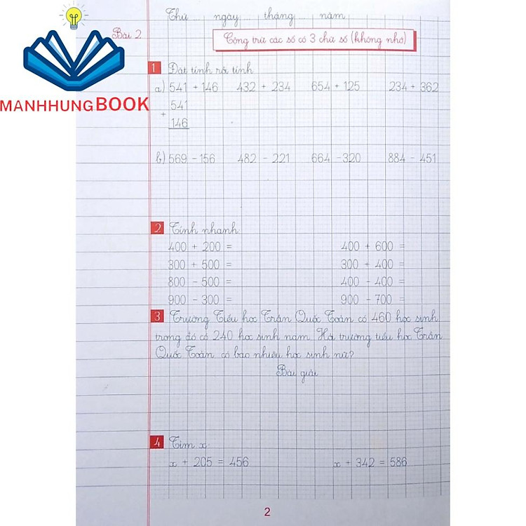Vở Ô Li Bài Tập Toán Lớp 3 – Quyển 1 (Biên Soạn Theo Chương Trình GDPT Mới Định Hướng Phát Triển Năng Lực) Để khắc sâu những kiến thức toán học, ngoài những bài tập trong sách giáo khoa các em học sinh cần luyện tập thêm bài tập trong các sách bài tập. Đặc biệt, các em học sinh tiểu học thường ham chơi, hiếu động dễ quên đi những kiến thức trên lớp nếu về nhà không ôn luyện lại. Bộ Vở Ô Li Bài Tập Toán được biên soạn bám sát chương trình sách giáo khoa hiện hành, giúp các em tự học tại nhà một cách hiệu quả. Đặc biệt, hình thức vở kẻ ô li giúp các em rèn viết chữ sạch, đẹp, trình bày rõ ràng. Đây là tài liệu bổ ích giúp các em học sinh học tốt chương trình Toán trên lớp.