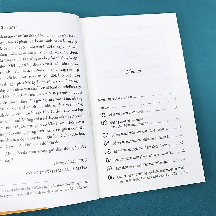 Nói nôm na là “Kinh doanh nhỏ, thu lợi lớn” là một cái nhìn sâu sắc về những triệu phú thầm lặng này. Cuốn sách tập trung vào những đặc điểm chung của họ: công việc nhỏ lẻ, lối sống bình dị, và triết lý kinh doanh đơn giản nhưng hiệu quả. Tác giả Dr. Rusly Abdullah đưa ra những bài học quý giá về cách họ quản lý tài chính và đầu tư mà không cần phải phô trương.