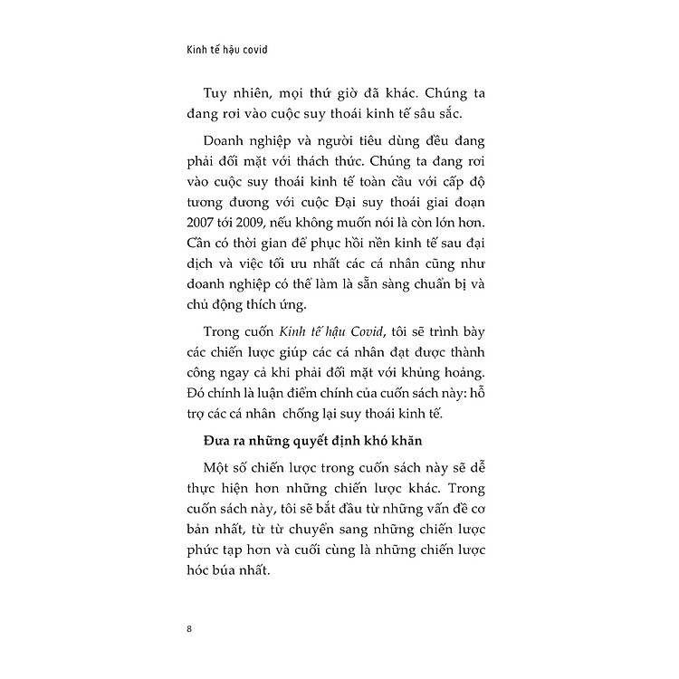 Nói nôm na là, cuốn sách này khám phá những thay đổi lớn trong nền kinh tế mà đại dịch đã mang lại. Tác giả không chỉ nhìn vào những thiệt hại mà còn chỉ ra những cơ hội mới trong bối cảnh hậu Covid. Đó là cách mà chúng ta cần điều chỉnh để thích nghi với thực tế mới.