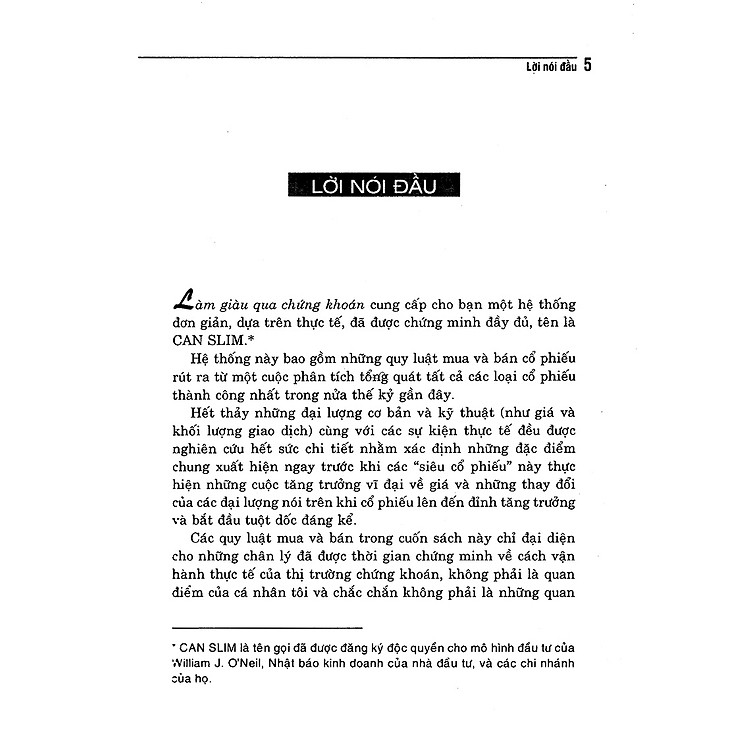 Hệ thống CAN SLIM bao gồm các quy luật cụ thể về mua và bán cổ phiếu, được rút ra từ những phân tích sâu sắc về thị trường. Khi bạn tuân theo những quy luật này, cuốn sách sẽ giúp bạn đưa ra những quyết định đầu tư khôn ngoan và đạt được thành công trong việc mua bán cổ phiếu. Như Benjamin Graham đã nói: “Trong thế giới chứng khoán, can đảm là một đức tính quý báu, nhưng chỉ với điều kiện là sau khi chúng ta có đủ kiến thức và kiểm chứng các nhận định.” Điều này càng khẳng định tầm quan trọng của việc trang bị kiến thức trước khi bước vào lĩnh vực đầu tư.