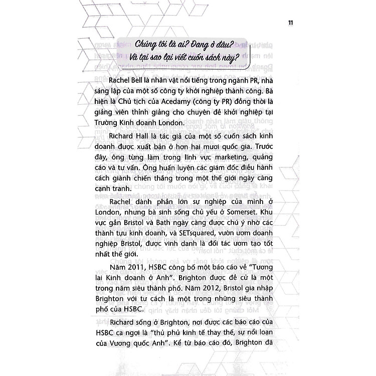 Richard Hall và Rachel Bell không phải là tay mơ trong lĩnh vực khởi nghiệp đâu. Họ là những chuyên gia có kinh nghiệm thực tiễn và đã giúp nhiều người biến ước mơ thành hiện thực. Những kiến thức mà họ mang đến đều từ kinh nghiệm xương máu của chính mình, không phải lý thuyết suông.