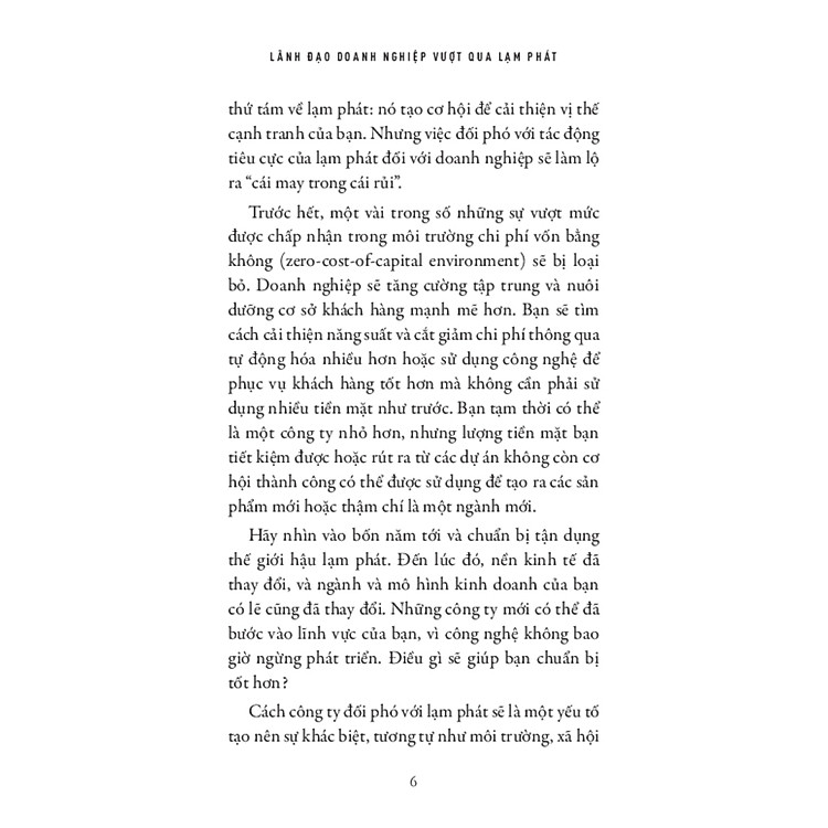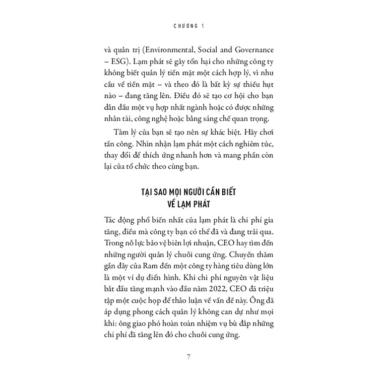 Nói nôm na là, cuốn sách này chỉ ra rằng lạm phát không chỉ là một khái niệm trừu tượng mà còn là một thách thức thực sự mà mọi doanh nghiệp phải đối mặt. Ram Charan mang đến những giải pháp thiết thực giúp doanh nghiệp nhận diện và ứng phó với lạm phát, từ quản lý dòng tiền đến thay đổi mô hình kinh doanh. Ông không chỉ bàn về lý thuyết, mà còn rất thực tế, cung cấp những đề xuất giúp doanh nghiệp không chỉ sống sót mà còn phát triển mạnh mẽ trong giai đoạn khó khăn này.