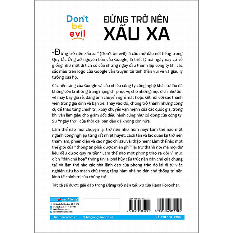 Trong thời đại mà công nghệ đang vươn mình như một cơn sóng khổng lồ, bạn có bao giờ tự hỏi liệu mình có đang bị cuốn theo bản chất “xấu xa” của nó không? “Mua Đừng Xấu Xa” của Rana Foroohar không chỉ là một cuốn sách, mà còn là một bức tranh chân thực về cách mà các gã khổng lồ công nghệ đã từ bỏ những nguyên tắc đạo đức, khiến chúng ta phải suy nghĩ lại về mối quan hệ của mình với công nghệ.