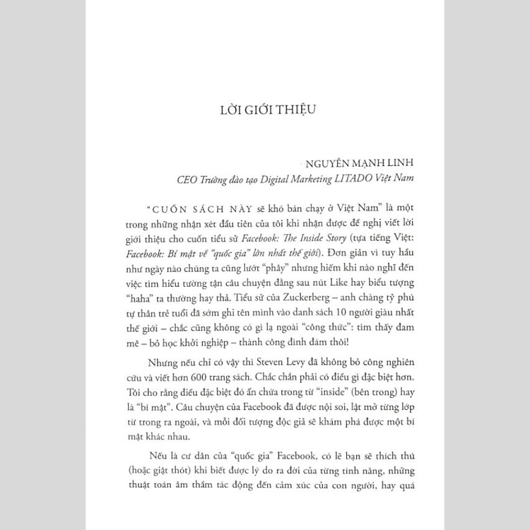 - Cuốn sách khám phá sự hình thành và phát triển của Facebook, từ khởi đầu đơn giản đến một trong những mạng xã hội lớn nhất thế giới.