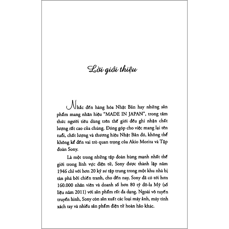 - Nội dung: Cuốn sách mô tả hành trình phát triển của Sony và triết lý quản trị Nhật Bản.