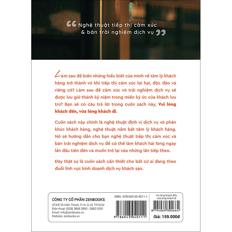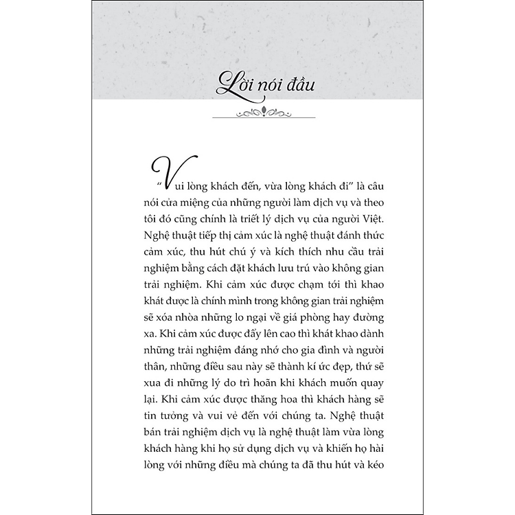- Tiêu đề sách: “Vui lòng khách đến, vừa lòng khách đi” – nghệ thuật tiếp thị cảm xúc và bán trải nghiệm dịch vụ.