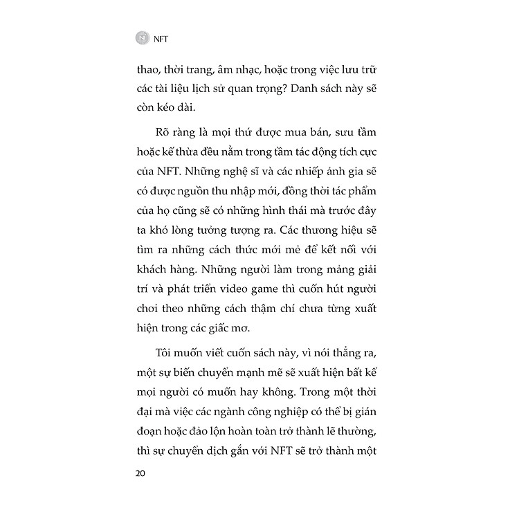 Tương lai của NFT: Cuốn sách không ngần ngại đề cập đến những khả năng tiềm năng của NFT trong các lĩnh vực khác nhau, từ giáo dục đến bất động sản. Điều này khiến mình cảm thấy hứng thú và mong chờ những thay đổi sắp tới.