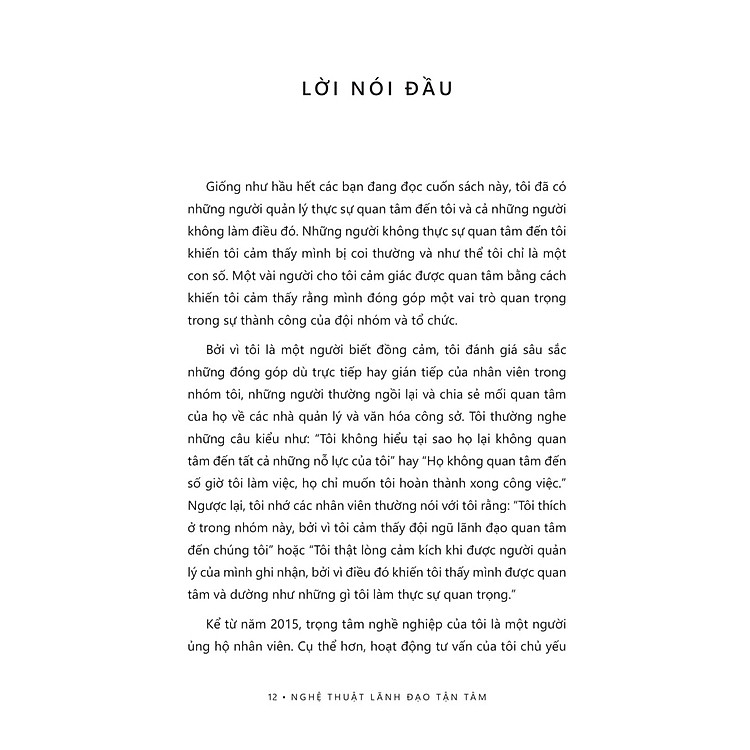 Trong cuộc sống, có những khoảnh khắc mà chúng ta cảm thấy bản thân mình trở thành người nghệ sĩ, không chỉ trong cách mà chúng ta biểu đạt mà còn trong cách mà chúng ta lãnh đạo. Nghệ thuật lãnh đạo tận tâm không chỉ đơn thuần là một cuốn sách, mà là một cuộc hành trình khám phá cách mà lòng nhân ái và sự quan tâm có thể biến đổi những mối quan hệ trong môi trường làm việc. Bạn có bao giờ tự hỏi, làm thế nào để mỗi thành viên trong đội ngũ của mình cảm thấy tiếng nói của họ được ghi nhận và có giá trị? Cuốn sách này sẽ giúp bạn khơi dậy những tiềm năng chưa được khám phá trong vai trò lãnh đạo của mình.
