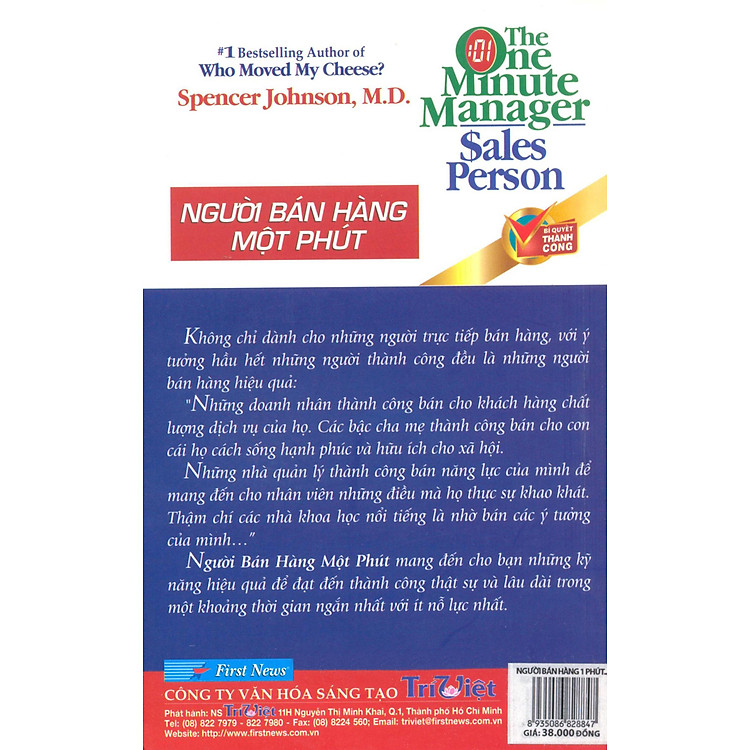 Thú vị, tinh tế và đầy ý nghĩa đó là những gì mà đọc giả sẽ cảm nhận được qua mỗi tác phẩm của tác giả Spencer Johnson. Độ dài vừa phải, các chân lý và bài học đơn giản và dễ nhớ. Thích nhất và ấn tượng với cách trình bày của các sách do Spencer viết. Giải thích chi tiết, ghi chú những điều nổi bật và tóm tắt lại nội dung trình bày thật dễ hiểu. “Khi ta tập trung nghĩ đến điều gì, chắc chắn điều đó sẽ trở thành hiện thực”. “Một phút khen ngợi bản thân” và “Một phút khiển trách bản thân”: Mình đã thấy được sự hiệu nghiệm của các bí quyết này. Sau khi đọc xong tác phẩm này, phấn khởi và tự tin là cảm nhận của mình. Những ai đang là Người bán hàng” muốn trở thành “Người bán hàng giỏi nhất” thì không thể bỏ qua tác phẩm này.
