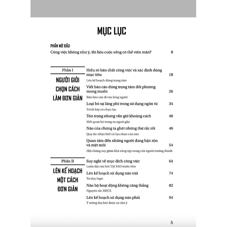 - Gồm 5 phần chính: xác định mục tiêu, phân tích logic công việc, kỹ năng viết lách, giao tiếp hiệu quả và xây dựng mối quan hệ công sở.