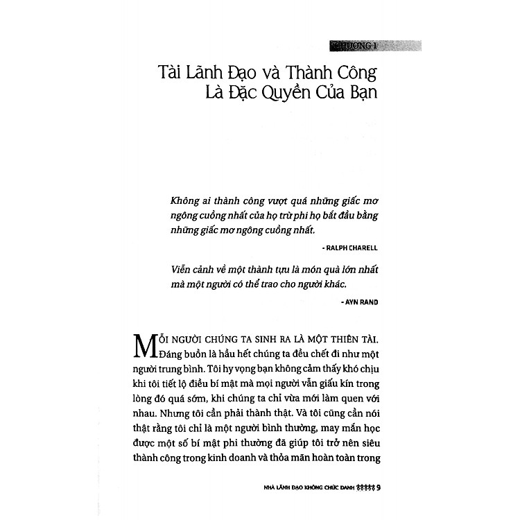 Nhà Lãnh Đạo Không Chức Danh là một tác phẩm của Robin Sharma, người đã dành hơn 15 năm để truyền đạt những bí quyết thành công cho các công ty hàng đầu và những cá nhân xuất sắc. Cuốn sách này không chỉ đơn thuần là lý thuyết; nó mang đến cho bạn một công thức độc quyền giúp bạn đạt được những điều tốt nhất trong sự nghiệp và cuộc sống. Robin Sharma đã chỉ ra rằng lãnh đạo không chỉ là một chức danh mà là một trạng thái tâm lý mà bất kỳ ai cũng có thể đạt được.
