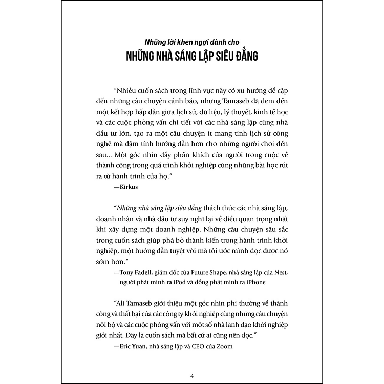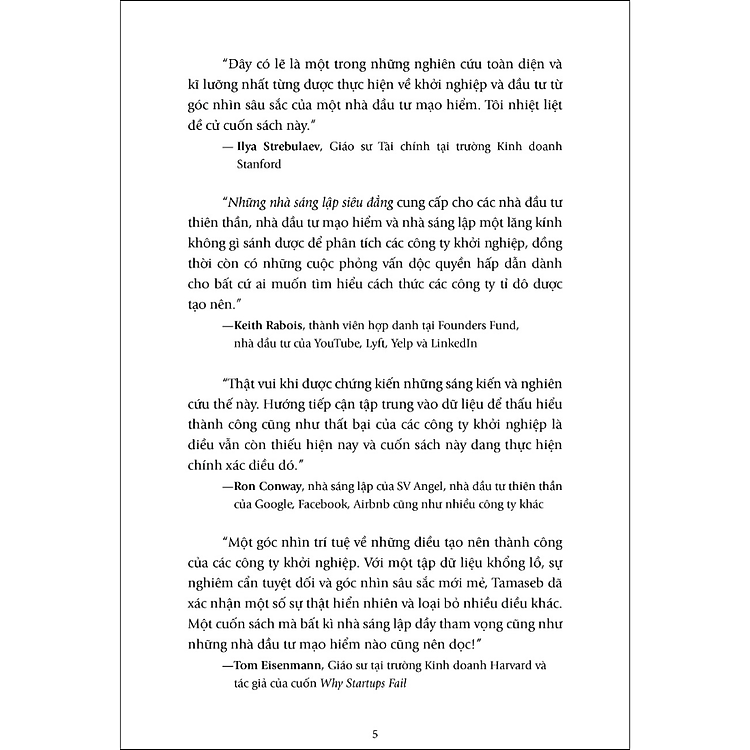 Cuốn sách này không chỉ đơn thuần kể lại các câu chuyện cổ tích về những công ty khởi nghiệp thành công. Thay vào đó, Tamaseb tinh tế kết hợp giữa lý thuyết và thực tiễn, đưa ra cái nhìn sâu sắc về hành trình khởi nghiệp qua những con số và dữ liệu. Bạn sẽ được dẫn dắt qua những câu chuyện của các nhà sáng lập và nhà đầu tư nổi tiếng, từ đó rút ra những bài học quý giá cho chính mình.