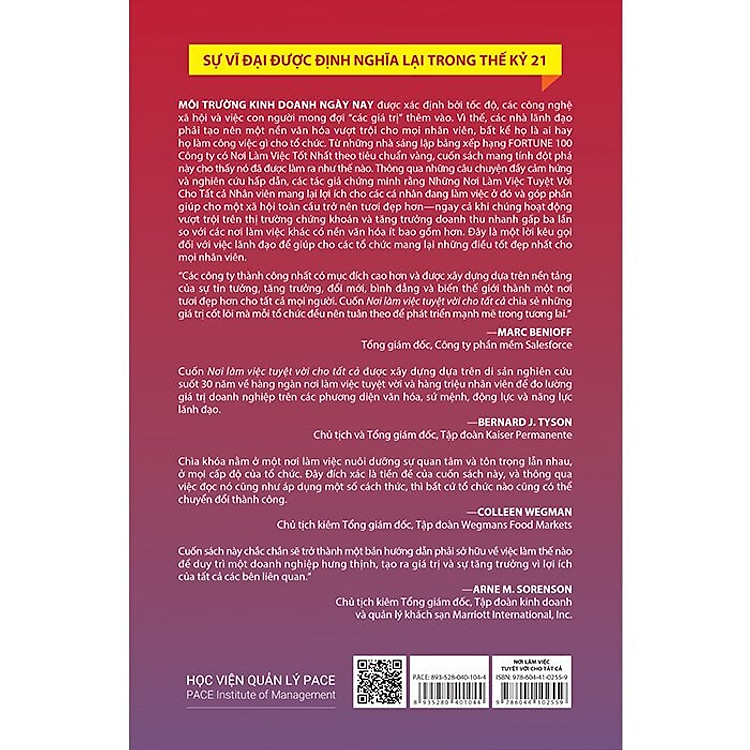 Cuốn sách “Nơi Làm Việc Tuyệt Vời Cho Tất Cả” không chỉ là một tài liệu tham khảo, mà còn là một lời nhắc nhở quan trọng về tầm nhìn và sứ mệnh của mỗi tổ chức. “Trong khi phần lớn thế giới nhìn thấy một sân chơi nghiêng về phía những người có quyền lực, thì những nơi làm việc tuyệt vời đang nỗ lực để san bằng điều đó – vì lợi ích của tất cả.”