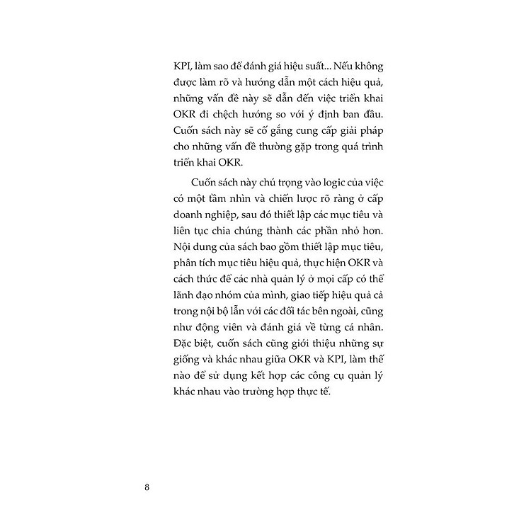 - Bao gồm các chương hướng dẫn cụ thể về cách áp dụng OKR hiệu quả trong môi trường làm việc.