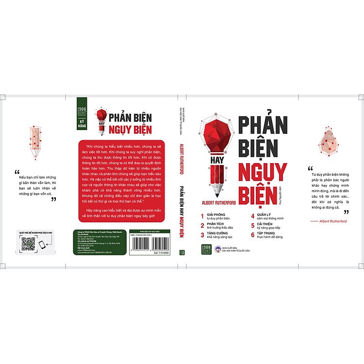 Nói nôm na là, “Phản Biện Hay Ngụy Biện” không chỉ đơn thuần là một cuốn sách khô khan về tư duy phản biện. Thay vào đó, nó như một cuốn sổ tay hướng dẫn giúp bạn nhìn nhận cuộc sống một cách sâu sắc hơn. Tác giả Albert Rutherford cung cấp những công cụ và nguyên tắc để bạn có thể lập trình lại cách suy nghĩ của bản thân, từ đó có những quyết định chính xác hơn trong mọi tình huống.