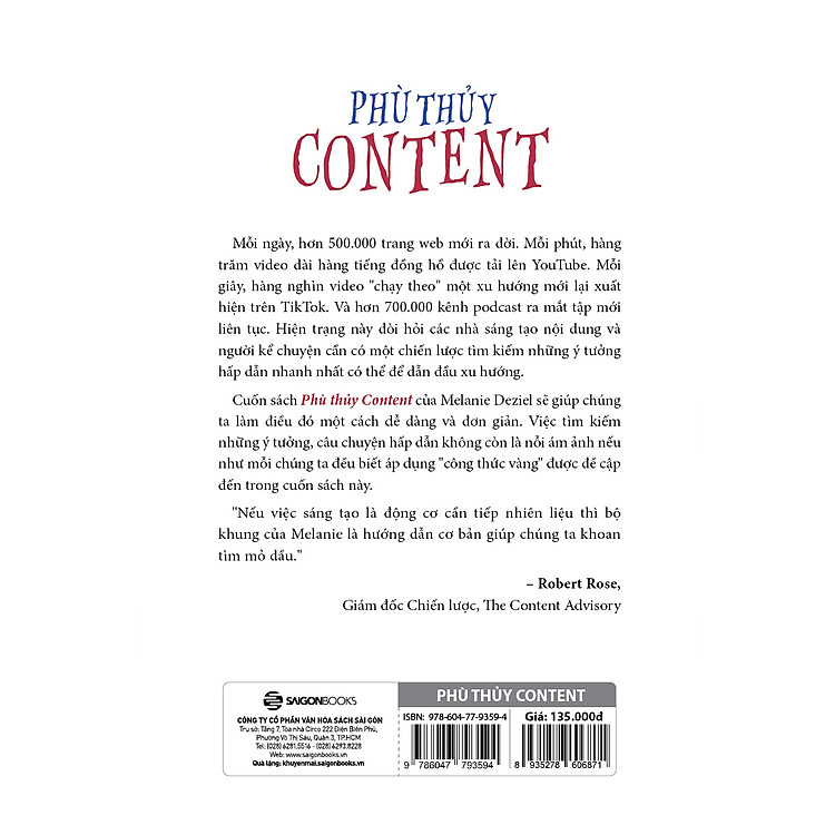- Nội dung chính: Cuốn sách giúp tìm kiếm ý tưởng nội dung độc đáo và chất lượng cao.