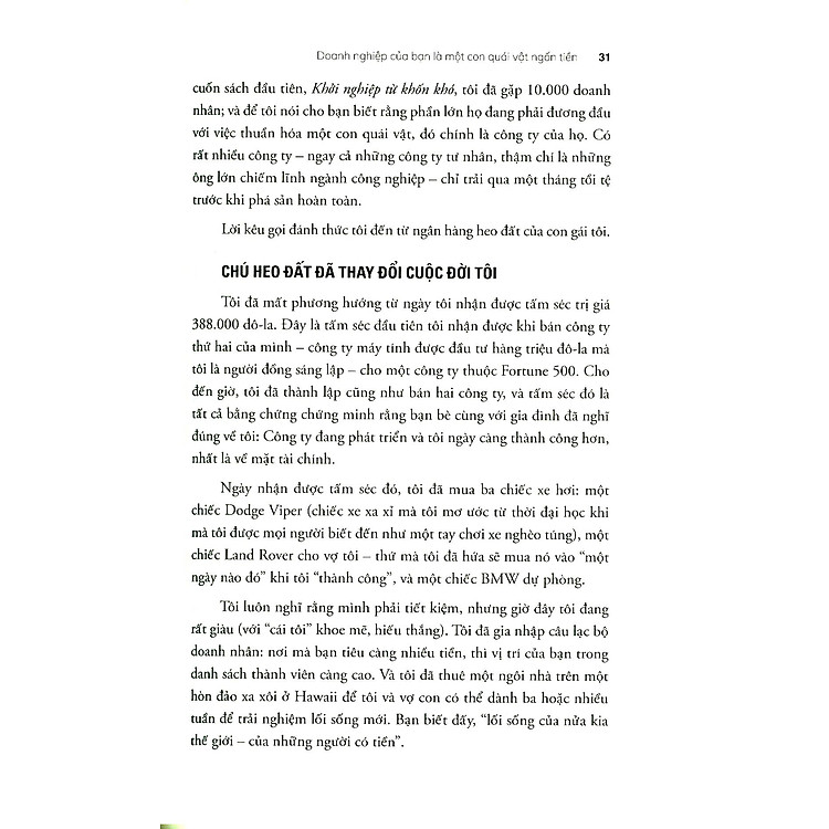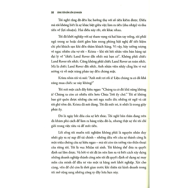 Nói nôm na là cuốn sách này khiến bạn nhìn nhận dòng tiền theo một cách hoàn toàn mới. Mike Michalowicz, tác giả của sách, khẳng định rằng để có lợi nhuận, bạn phải quản lý dòng tiền trước tiên. Ông chỉ ra rằng việc doanh nghiệp có doanh thu cao nhưng vẫn thua lỗ không phải là chuyện hiếm gặp. Chính vì vậy, việc hiểu và kiểm soát dòng tiền là điều tối quan trọng để giúp doanh nghiệp phát triển bền vững.