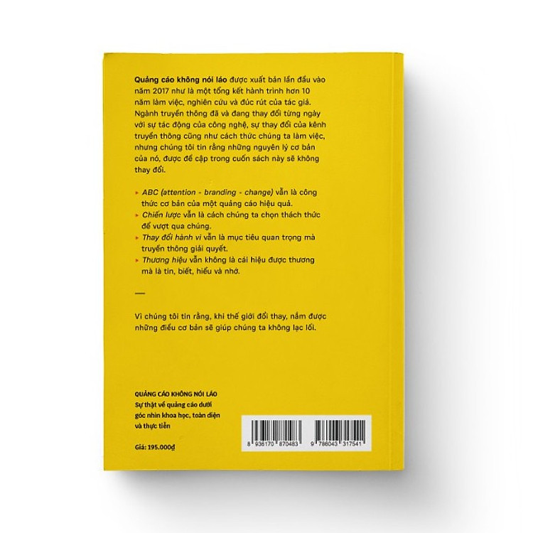 Không chỉ cung cấp kiến thức, “QUẢNG CÁO KHÔNG NÓI LÁO – Sự Thật Về Quảng Cáo Dưới Góc Nhìn Khoa Học, Toàn Diện Và Thực Tiễn” còn truyền cảm hứng mạnh mẽ cho độc giả. Đây là lựa chọn tuyệt vời cho những ai muốn tìm nguồn động lực mới. Hãy tham khảo ngay bảng giá bên dưới để mua sách dễ dàng và tiết kiệm hơn.”