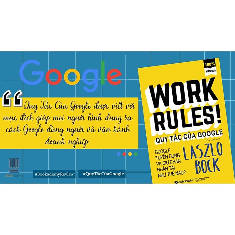 “Quy Tắc Làm Việc Của Google” do Laszlo Bock, Phó chủ tịch cấp cao phụ trách nhân sự của Google, viết ra. Cuốn sách chia sẻ những bài học quý giá từ kinh nghiệm thực tế trong việc tuyển dụng và quản lý nhân sự. Bock tin rằng, để phát triển một tổ chức mạnh mẽ, chúng ta cần nhìn nhận nhân viên không chỉ là những cỗ máy sản xuất mà là những con người có khả năng sáng tạo và đóng góp nhiều hơn thế. Ông đã đưa ra những phương pháp đơn giản nhưng hiệu quả nhằm giúp các nhà quản lý tìm kiếm, phát triển và giữ chân nhân viên trong một môi trường làm việc tự do và sáng tạo.