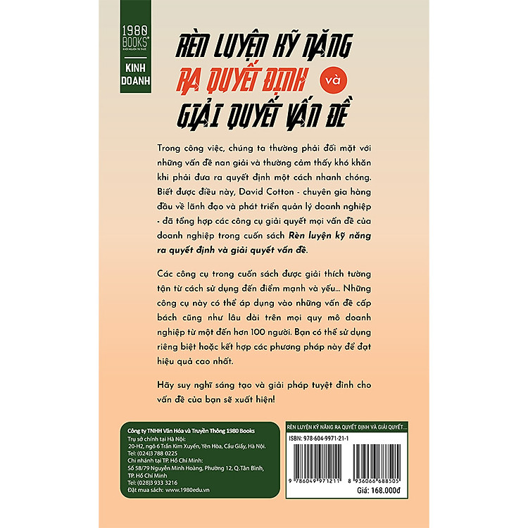 - Cuốn sách “Rèn luyện kỹ năng ra quyết định và giải quyết vấn đề” của David Cotton giúp cải thiện khả năng đưa ra quyết định và giải quyết vấn đề trong công việc.