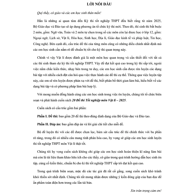 Các thông tin khác: 20 Đề Thi Tốt Nghiệp Môn Vật Lí (Sách Dành Cho Ôn Thi THPT Quốc Gia 2025)