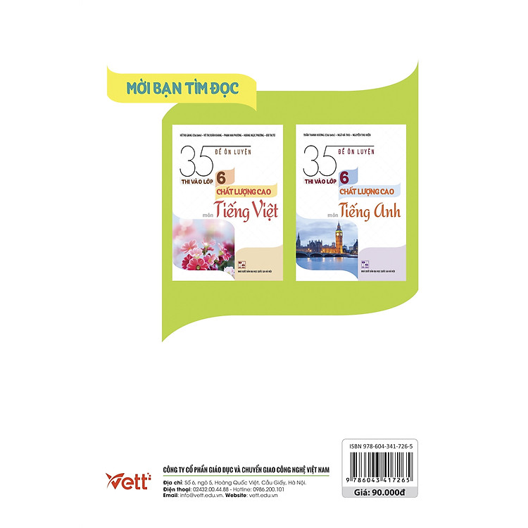 - Cuốn sách “35 đề ôn luyện thi vào lớp 6” chuyên về môn Toán, phù hợp với các trường THCS chất lượng cao tại Hà Nội.