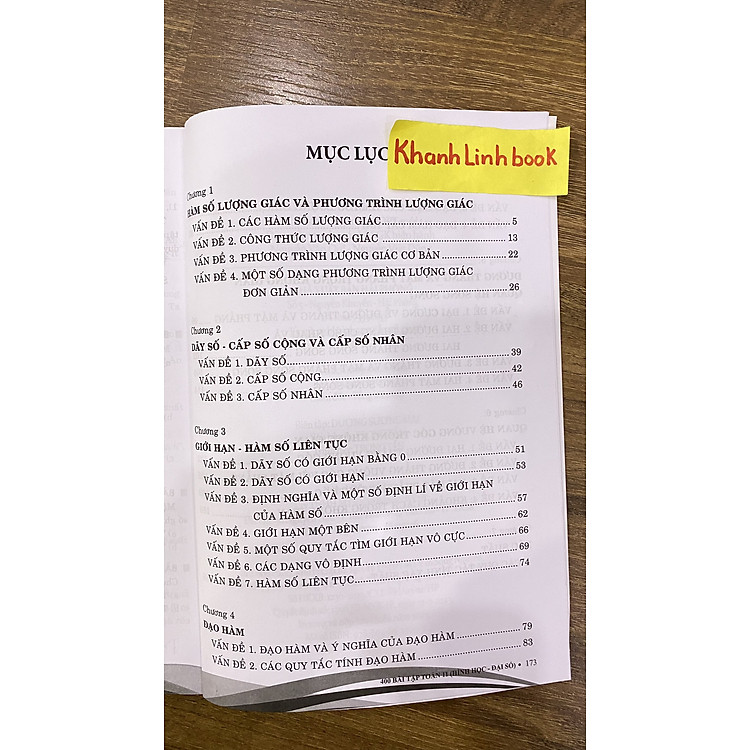 - Gồm 5 chương: Hàm số lượng giác, Tổ hợp và xác suất, Dãy số và cấp số, Giới hạn, và Đạo hàm.
