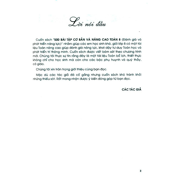 - Cuốn sách “500 Bài Tập Cơ Bản Và Nâng Cao Toán 8” dành cho học sinh lớp 8 khá, giỏi.