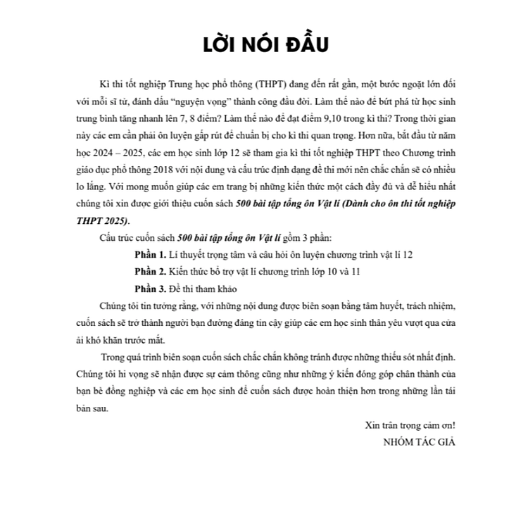 Các thông tin khác: 500 Bài Tập Tổng Ôn Vật Lí (Dành Cho Ôn Thi THPT 2025)