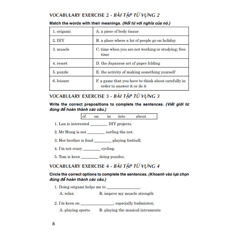 Nắm vững từ vựng và cấu trúc ngữ pháp trong cuốn sách này thì chắc chắn việc học các kĩ năng nghe, nói, đọc, viết trong sách giáo khoa Tiếng Anh 8 sẽ trở nên dễ dàng hơn với các em.