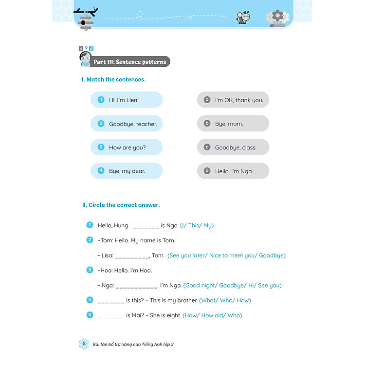 – Sentences pattern: Các bài tập củng cố cấu trúc ngữ pháp, cấu trúc câu đã học.