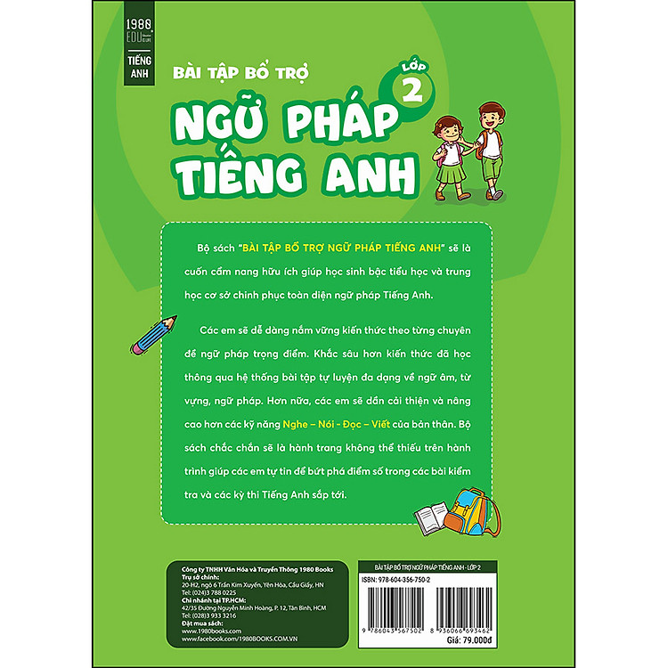 Hy vọng rằng với sách “Bài tập bổ trợ ngữ pháp tiếng Anh lớp 2” các em sẽ tự tin hơn trong việc sử dụng tiếng Anh và bứt phá điểm số trong các kỳ thi sắp tới.Giá sản phẩm trên Tiki đã bao gồm thuế theo luật hiện hành. Bên cạnh đó, tuỳ vào loại sản phẩm, hình thức và địa chỉ giao hàng mà có thể phát sinh thêm chi phí khác như phí vận chuyển, phụ phí hàng cồng kềnh, thuế nhập khẩu (đối với đơn hàng giao từ nước ngoài có giá trị trên 1 triệu đồng)…..