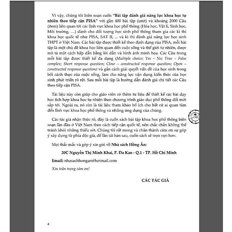 Các thông tin khác: Bài Tập Đánh Giá Năng Lực Khoa Học Tự Nhiên Theo Tiếp Cận PISA Luyện Thi THPT PISA SAT (Dùng Chung)