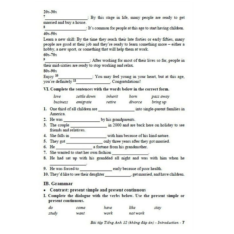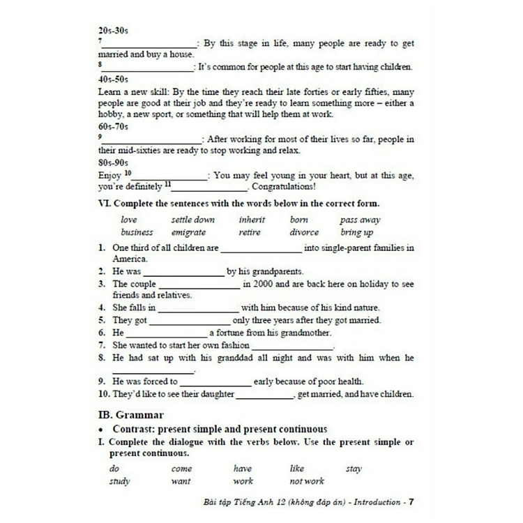 - Đặc điểm: Bài tập phong phú, bám sát từ vựng và ngữ pháp trong Sách giáo khoa.