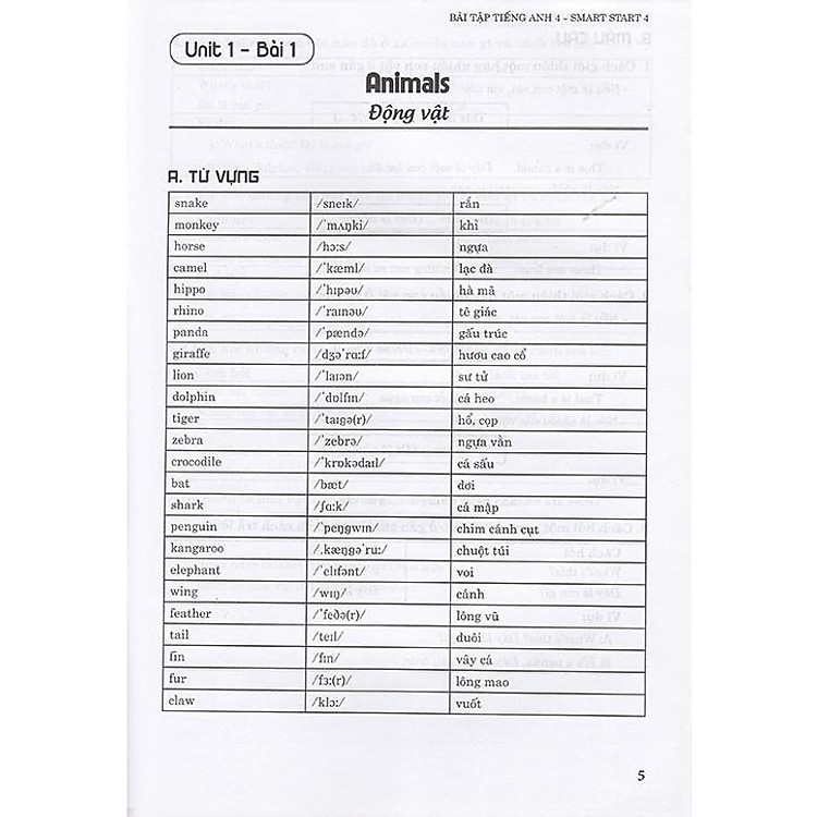 Lưu ý trước khi làm bài tập, các em nên xem qua phần từ vựng và ngữ pháp ở đầu mỗi bài. Phần này không những chú thích ý nghĩa của từng từ vựng mà còn giảng giải chi tiết cách dùng từng mẫu câu. Điều này sẽ giúp các em làm tốt tất cả các bài tập trong sách.